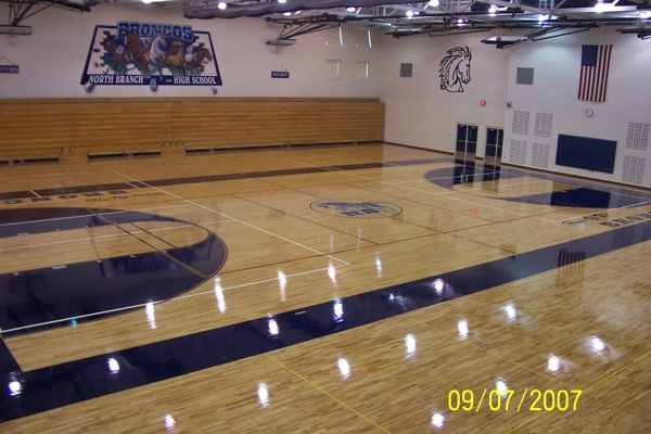 二、场地清扫:篮球馆木地板安装进场前首先检查地面有没有做防水,尤其是一层地面,然后对场地进行清扫,铲除水泥砂浆虚浮物备用。