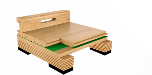 双层龙骨结构——(专业比赛之选)符合德国DIN标准,弹性、吸震性良好,适用于大型比赛场馆